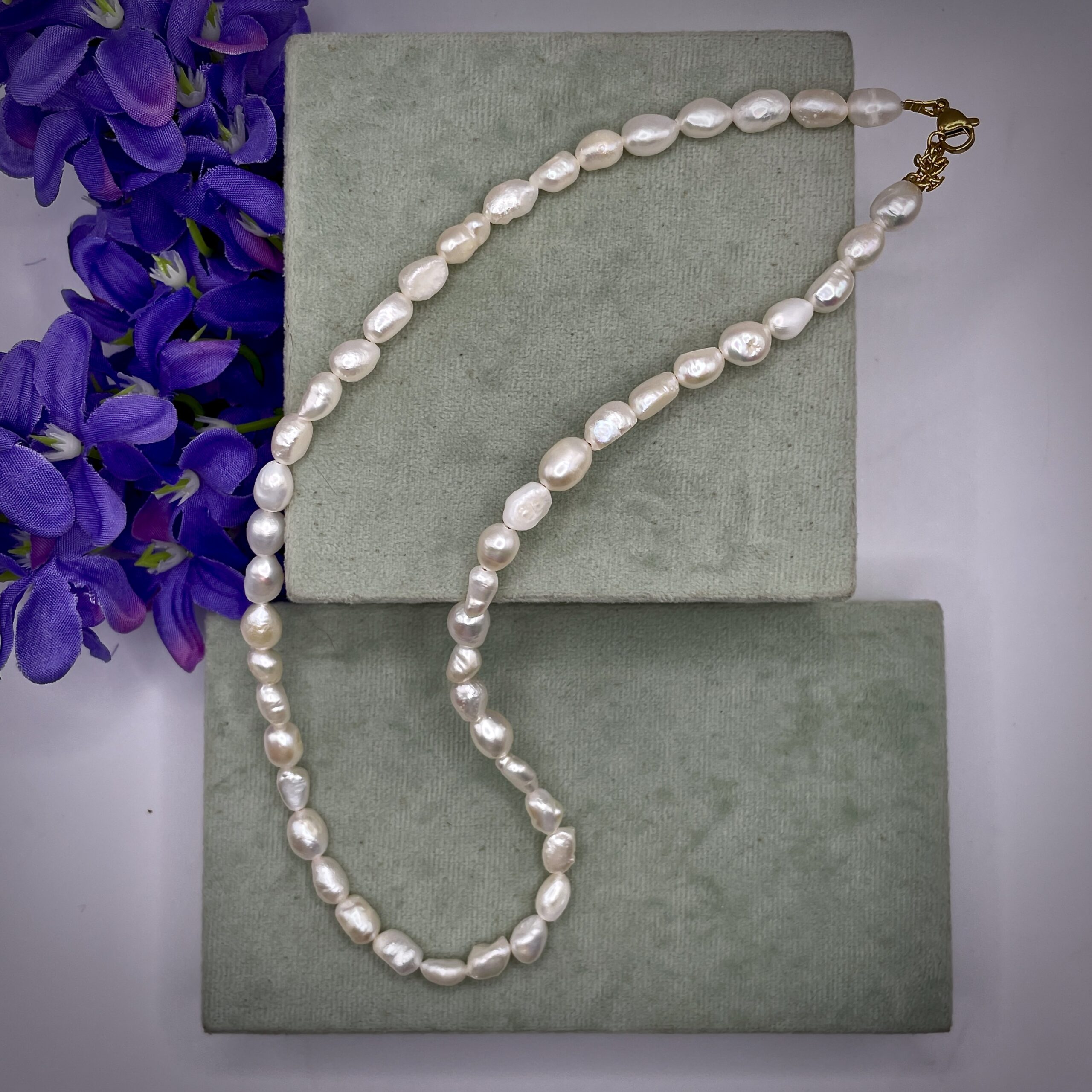 De parels hebben een grote van 8 mm.